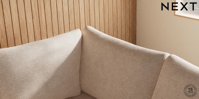 7.2.10 Parker Medium Corner Sofa - Right Hand Boucle Chenille Oyster Low Retro Tapered - Dark | Made Click here to use our website with more accessibility support, for example screen readers