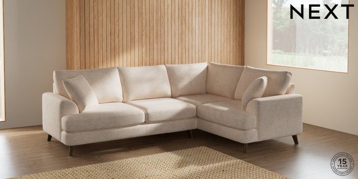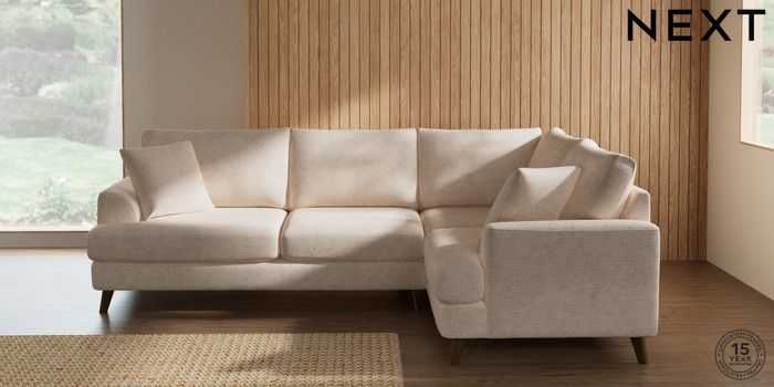 7.2.10 Parker Medium Corner Sofa - Right Hand Boucle Chenille Oyster Low Retro Tapered - Mid | Made Click here to use our website with more accessibility support, for example screen readers