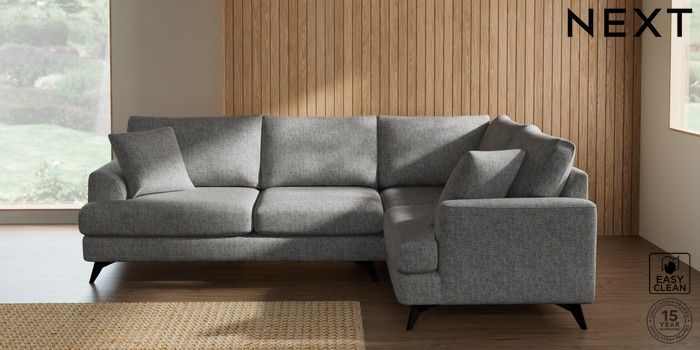 7.2.10 Parker Medium Corner Sofa - Right Hand Chunky Boucle Easy Clean Light Grey High Metal - Black | Made Click here to use our website with more accessibility support, for example screen readers