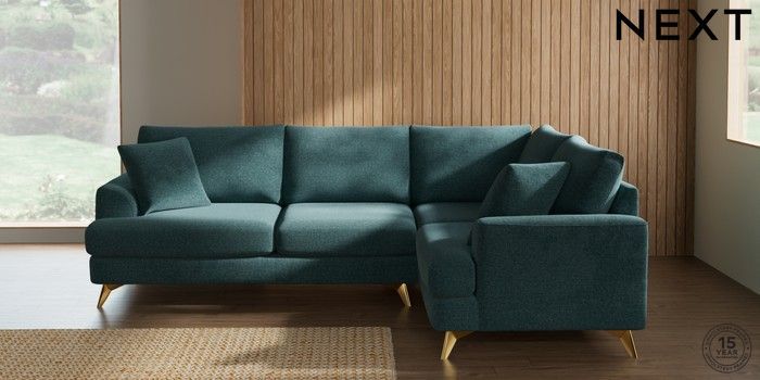 7.2.10 Parker Medium Corner Sofa - Right Hand Chunky Chenille Mid Teal Green High Metal - Brass | Made Click here to use our website with more accessibility support, for example screen readers