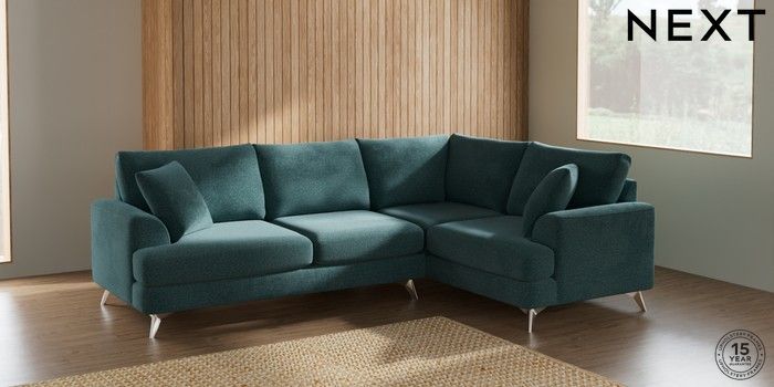 7.2.10 Parker Medium Corner Sofa - Right Hand Chunky Chenille Mid Teal Green High Metal - Chrome | Made Click here to use our website with more accessibility support, for example screen readers
