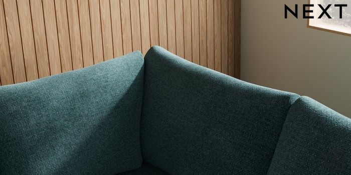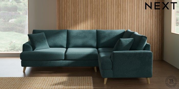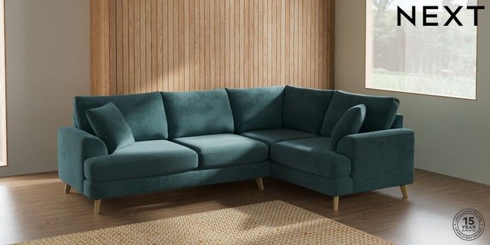 7.2.10 Parker Medium Corner Sofa - Right Hand Chunky Chenille Mid Teal Green Low Retro Tapered - Light | Made Click here to use our website with more accessibility support, for example screen readers