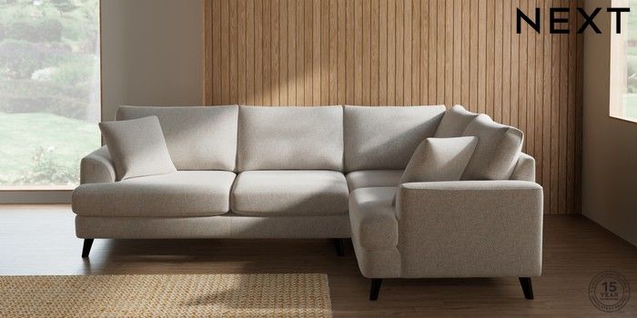 7.2.10 Parker Medium Corner Sofa - Right Hand Chunky Marl Oyster Low Retro Tapered - Dark | Made Click here to use our website with more accessibility support, for example screen readers