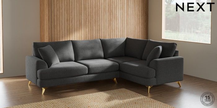 7.2.10 Parker Medium Corner Sofa - Right Hand Chunky Texture Dark Grey High Metal - Brass | Made Click here to use our website with more accessibility support, for example screen readers