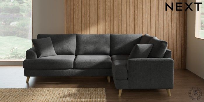 7.2.10 Parker Medium Corner Sofa - Right Hand Chunky Texture Dark Grey Low Retro Tapered - Light | Made Click here to use our website with more accessibility support, for example screen readers