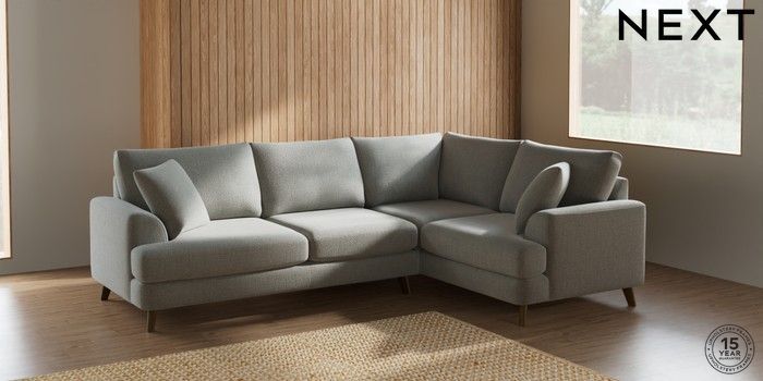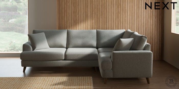 7.2.10 Parker Medium Corner Sofa - Right Hand Chunky Texture Dove Low Retro Tapered - Mid | Made Click here to use our website with more accessibility support, for example screen readers