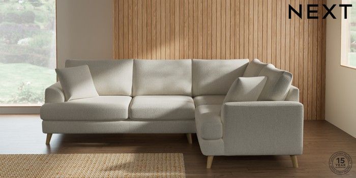 7.2.10 Parker Medium Corner Sofa - Right Hand Chunky Texture Oyster Low Retro Tapered - Light | Made Click here to use our website with more accessibility support, for example screen readers