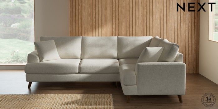 7.2.10 Parker Medium Corner Sofa - Right Hand Chunky Texture Oyster Low Retro Tapered - Mid | Made Click here to use our website with more accessibility support, for example screen readers