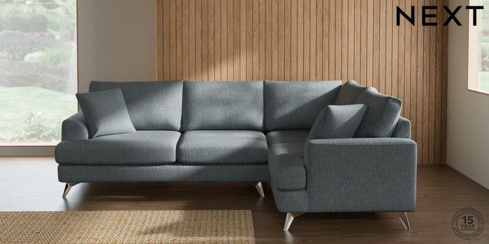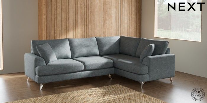 7.2.10 Parker Medium Corner Sofa - Right Hand Chunky Weave Mid Blue High Metal - Chrome | Made Click here to use our website with more accessibility support, for example screen readers
