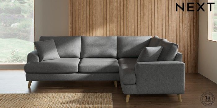 7.2.10 Parker Medium Corner Sofa - Right Hand Chunky Weave Mid Grey Low Retro Tapered - Light | Made Click here to use our website with more accessibility support, for example screen readers