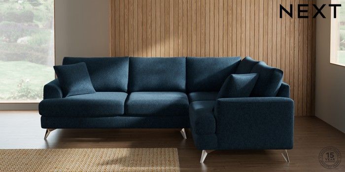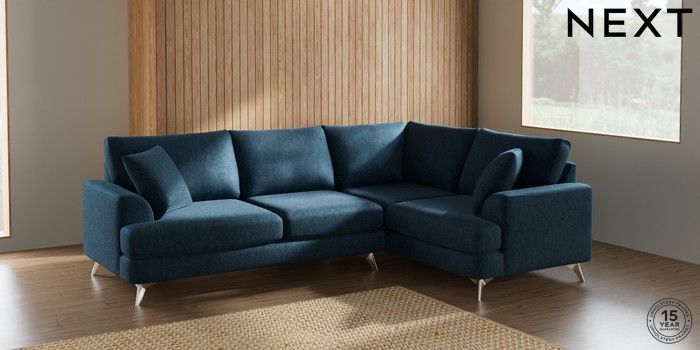 7.2.10 Parker Medium Corner Sofa - Right Hand Cotswold Chenille Dark Blue High Metal - Chrome | Made Click here to use our website with more accessibility support, for example screen readers