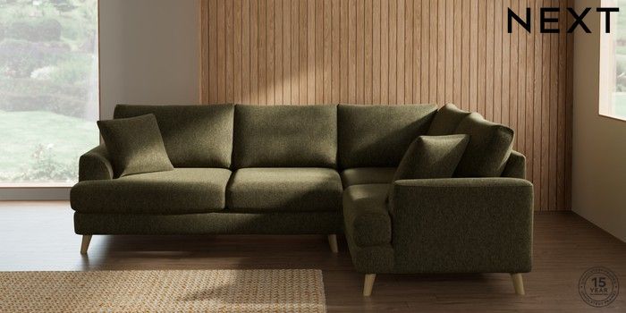 7.2.10 Parker Medium Corner Sofa - Right Hand Cotswold Chenille Dark Green Low Retro Tapered - Light | Made Click here to use our website with more accessibility support, for example screen readers