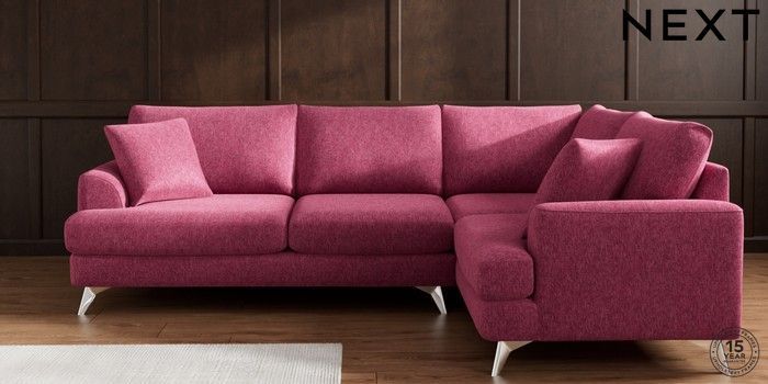 7.2.10 Parker Medium Corner Sofa - Right Hand Cotswold Chenille Dark Raspberry Pink High Metal - Chrome | Made Click here to use our website with more accessibility support, for example screen readers