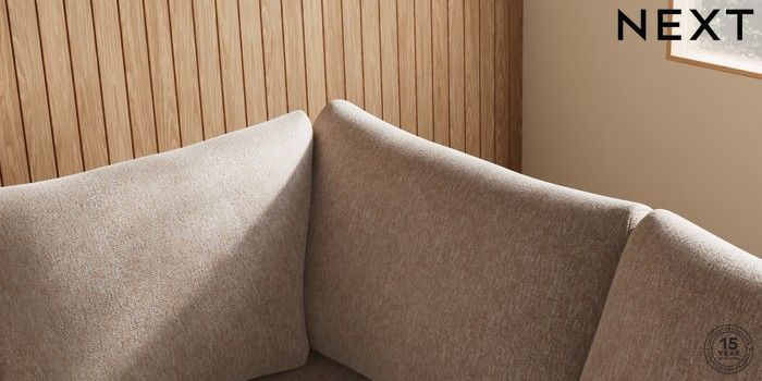7.2.10 Parker Medium Corner Sofa - Right Hand Cotswold Chenille Light Natural Low Retro Tapered - Dark | Made Click here to use our website with more accessibility support, for example screen readers