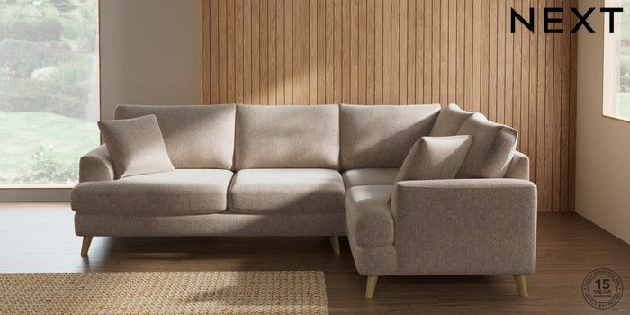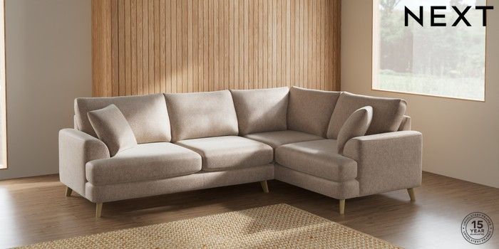 7.2.10 Parker Medium Corner Sofa - Right Hand Cotswold Chenille Light Natural Low Retro Tapered - Light | Made Click here to use our website with more accessibility support, for example screen readers