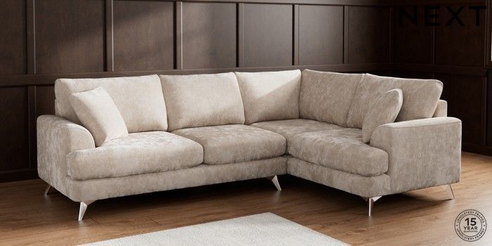 7.2.10 Parker Medium Corner Sofa - Right Hand Distressed Velour Mid Natural High Metal - Chrome | Made Click here to use our website with more accessibility support, for example screen readers