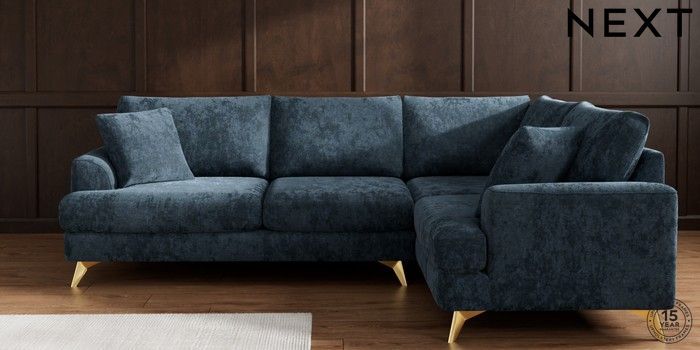 7.2.10 Parker Medium Corner Sofa - Right Hand Distressed Velour Midnight Blue High Metal - Brass | Made Click here to use our website with more accessibility support, for example screen readers