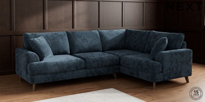 7.2.10 Parker Medium Corner Sofa - Right Hand Distressed Velour Midnight Blue Low Retro Tapered - Mid | Made Click here to use our website with more accessibility support, for example screen readers