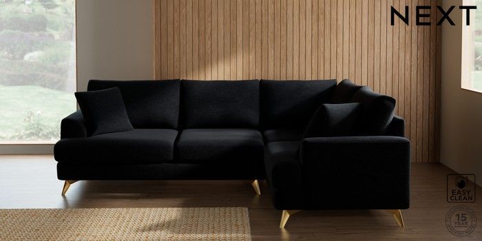 7.2.10 Parker Medium Corner Sofa - Right Hand Fine Chenille Easy Clean Black High Metal - Brass | Made Click here to use our website with more accessibility support, for example screen readers