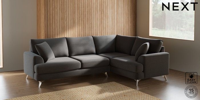 7.2.10 Parker Medium Corner Sofa - Right Hand Fine Chenille Easy Clean Dark Smoke Grey High Metal - Chrome | Made Click here to use our website with more accessibility support, for example screen readers