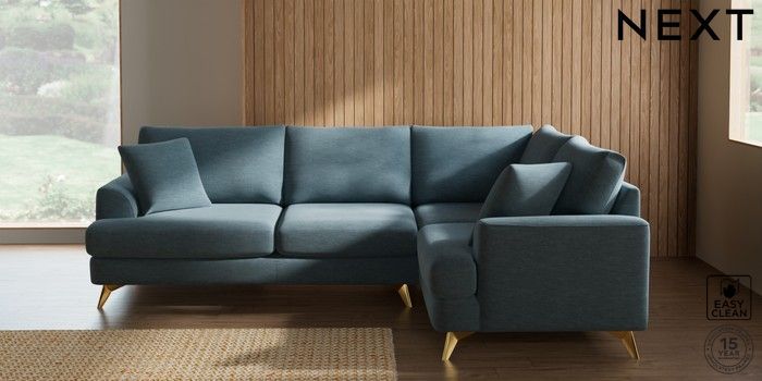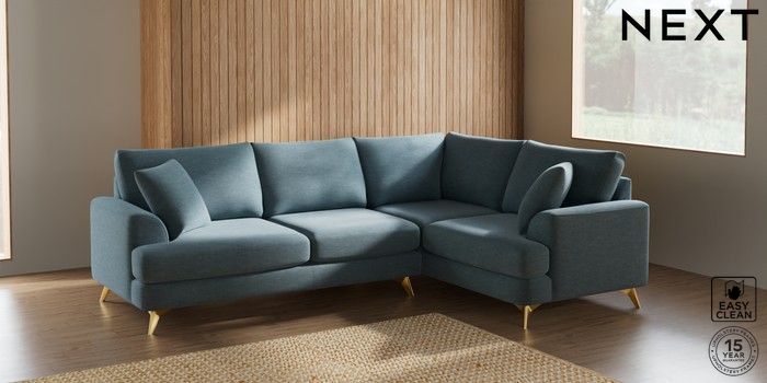 7.2.10 Parker Medium Corner Sofa - Right Hand Fine Chenille Easy Clean Mid Blue High Metal - Brass | Made Click here to use our website with more accessibility support, for example screen readers