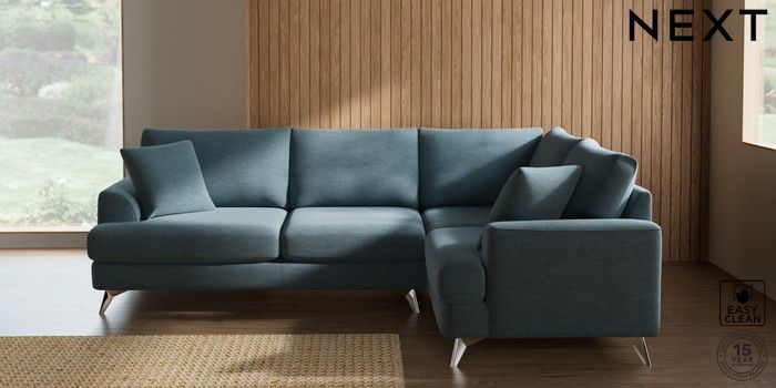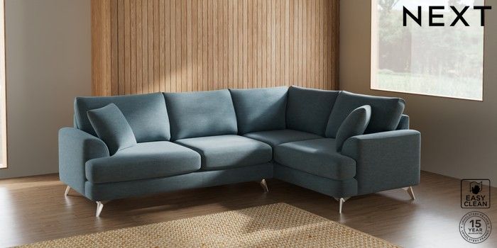 7.2.10 Parker Medium Corner Sofa - Right Hand Fine Chenille Easy Clean Mid Blue High Metal - Chrome | Made Click here to use our website with more accessibility support, for example screen readers