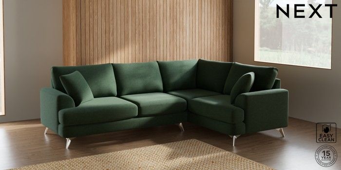 7.2.10 Parker Medium Corner Sofa - Right Hand Fine Chenille Easy Clean Mid Khaki Green High Metal - Chrome | Made Click here to use our website with more accessibility support, for example screen readers
