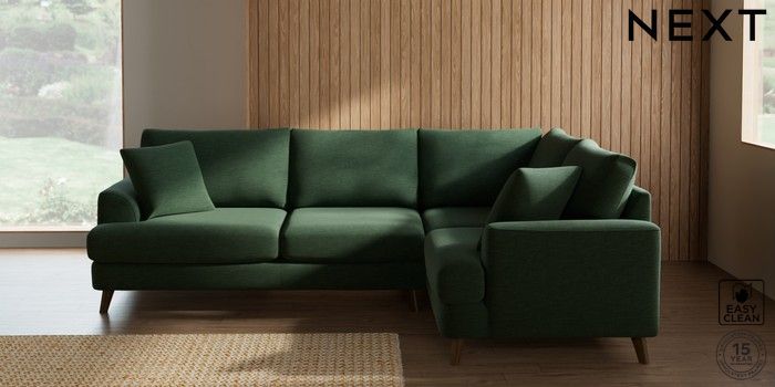 7.2.10 Parker Medium Corner Sofa - Right Hand Fine Chenille Easy Clean Mid Khaki Green Low Retro Tapered - Mid | Made Click here to use our website with more accessibility support, for example screen readers