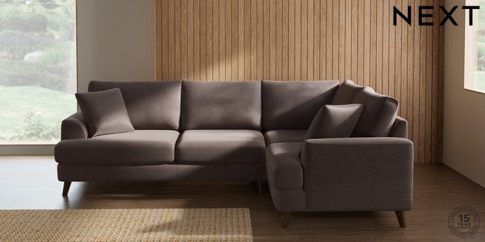 7.2.10 Parker Medium Corner Sofa - Right Hand Luxe Chenille Mink Brown Low Retro Tapered - Mid | Made Click here to use our website with more accessibility support, for example screen readers