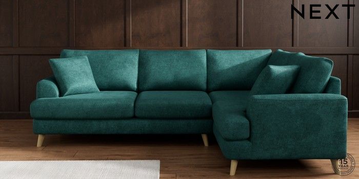 7.2.10 Parker Medium Corner Sofa - Right Hand Plush Chenille Dark Teal Green Low Retro Tapered - Light | Made Click here to use our website with more accessibility support, for example screen readers
