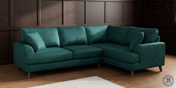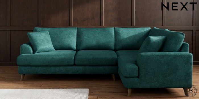 7.2.10 Parker Medium Corner Sofa - Right Hand Plush Chenille Dark Teal Green Low Retro Tapered - Mid | Made Click here to use our website with more accessibility support, for example screen readers