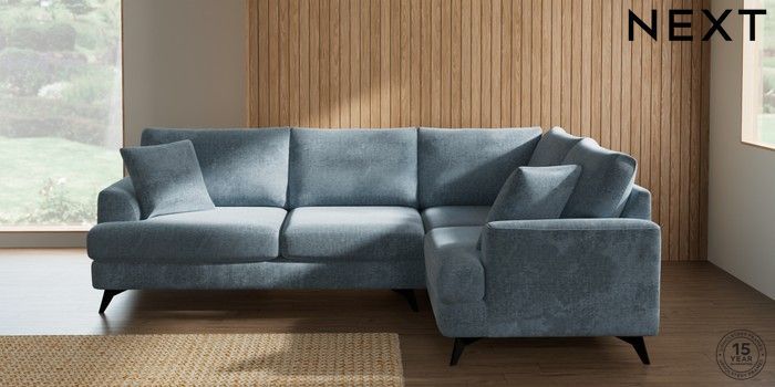 7.2.10 Parker Medium Corner Sofa - Right Hand Plush Chenille Light Blue High Metal - Black | Made Click here to use our website with more accessibility support, for example screen readers