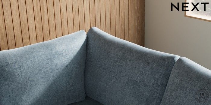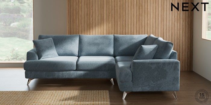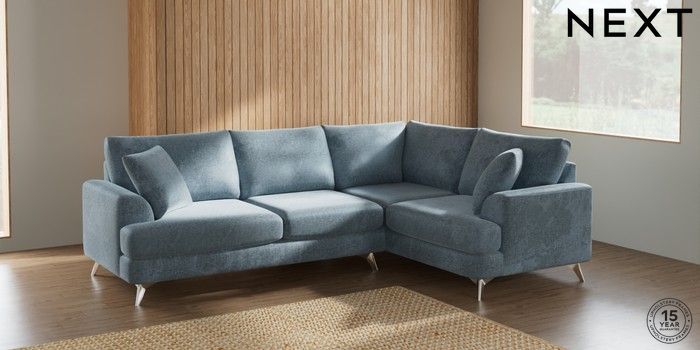 7.2.10 Parker Medium Corner Sofa - Right Hand Plush Chenille Light Blue High Metal - Chrome | Made Click here to use our website with more accessibility support, for example screen readers