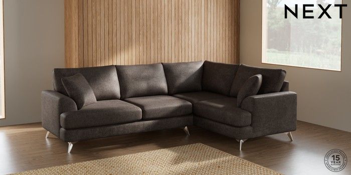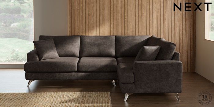 7.2.10 Parker Medium Corner Sofa - Right Hand Plush Chenille Mink Brown High Metal - Chrome | Made Click here to use our website with more accessibility support, for example screen readers