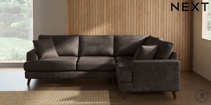 7.2.10 Parker Medium Corner Sofa - Right Hand Plush Chenille Mink Brown Low Retro Tapered - Mid | Made Click here to use our website with more accessibility support, for example screen readers