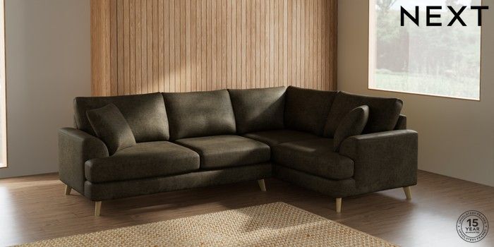 7.2.10 Parker Medium Corner Sofa - Right Hand Plush Chenille Moss Green Low Retro Tapered - Light | Made Click here to use our website with more accessibility support, for example screen readers