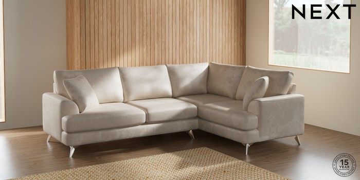 7.2.10 Parker Medium Corner Sofa - Right Hand Plush Chenille Oyster High Metal - Chrome | Made Click here to use our website with more accessibility support, for example screen readers