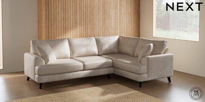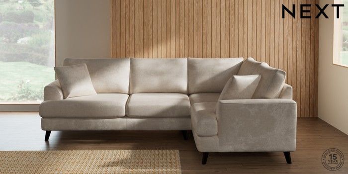 7.2.10 Parker Medium Corner Sofa - Right Hand Plush Chenille Oyster Low Retro Tapered - Dark | Made Click here to use our website with more accessibility support, for example screen readers