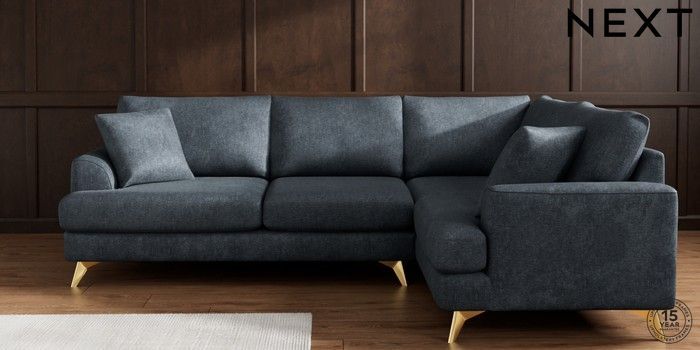 7.2.10 Parker Medium Corner Sofa - Right Hand Plush Chenille Slate Blue High Metal - Brass | Made Click here to use our website with more accessibility support, for example screen readers