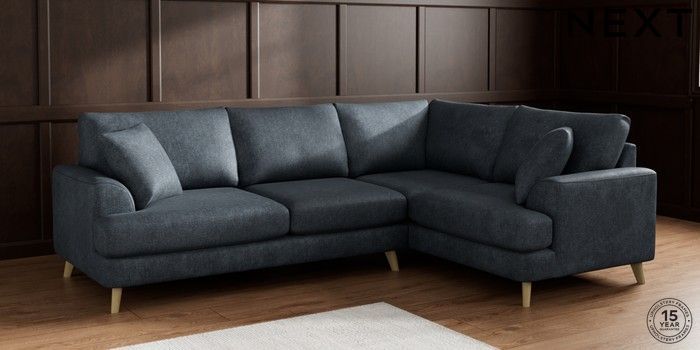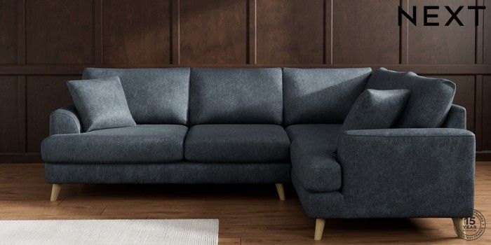 7.2.10 Parker Medium Corner Sofa - Right Hand Plush Chenille Slate Blue Low Retro Tapered - Light | Made Click here to use our website with more accessibility support, for example screen readers