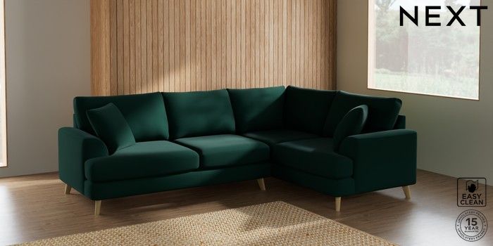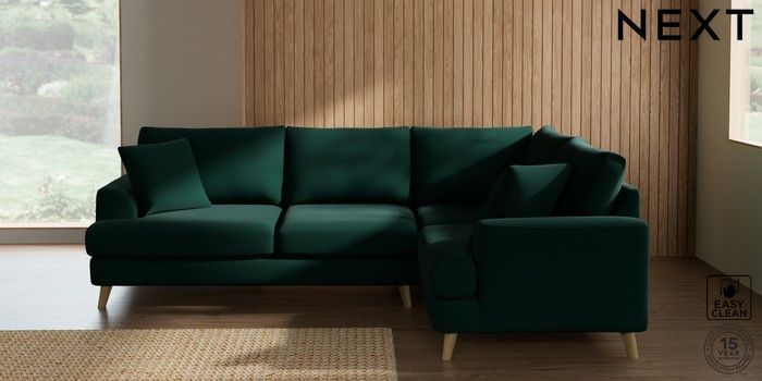 7.2.10 Parker Medium Corner Sofa - Right Hand Plush Velvet Easy Clean Bottle Green Low Retro Tapered - Light | Made Click here to use our website with more accessibility support, for example screen readers