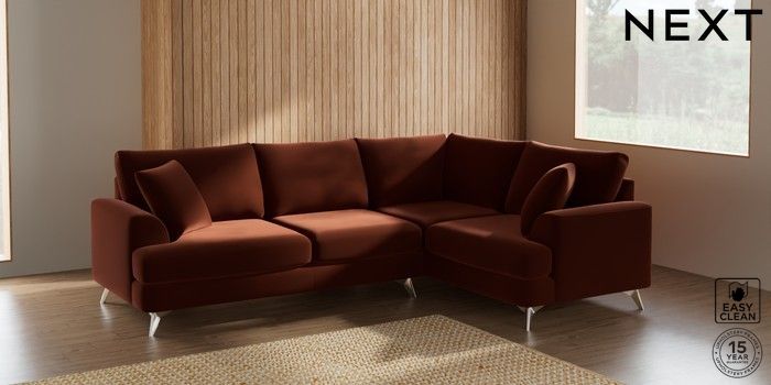 7.2.10 Parker Medium Corner Sofa - Right Hand Plush Velvet Easy Clean Ginger Orange High Metal - Chrome | Made Click here to use our website with more accessibility support, for example screen readers