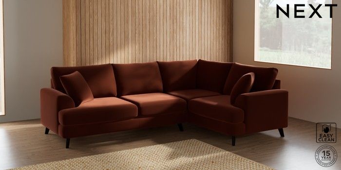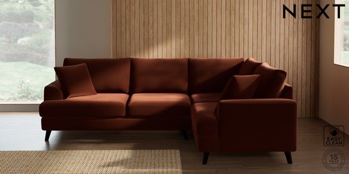 7.2.10 Parker Medium Corner Sofa - Right Hand Plush Velvet Easy Clean Ginger Orange Low Retro Tapered - Dark | Made Click here to use our website with more accessibility support, for example screen readers