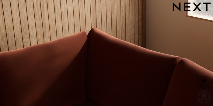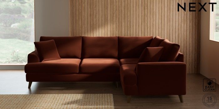 7.2.10 Parker Medium Corner Sofa - Right Hand Plush Velvet Easy Clean Ginger Orange Low Retro Tapered - Mid | Made Click here to use our website with more accessibility support, for example screen readers