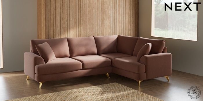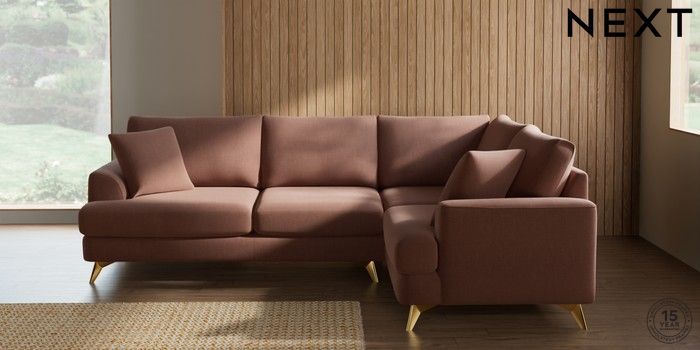 7.2.10 Parker Medium Corner Sofa - Right Hand Relaxed Linen Look Light Rust Brown High Metal - Brass | Made Click here to use our website with more accessibility support, for example screen readers