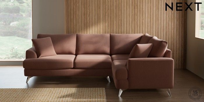 7.2.10 Parker Medium Corner Sofa - Right Hand Relaxed Linen Look Light Rust Brown High Metal - Chrome | Made Click here to use our website with more accessibility support, for example screen readers