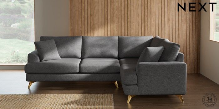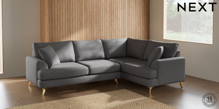 7.2.10 Parker Medium Corner Sofa - Right Hand Studio Chenille Mid Grey High Metal - Brass | Made Click here to use our website with more accessibility support, for example screen readers