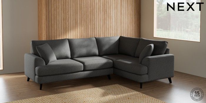 7.2.10 Parker Medium Corner Sofa - Right Hand Tweedy Chenille Dark Grey Low Retro Tapered - Dark | Made Click here to use our website with more accessibility support, for example screen readers