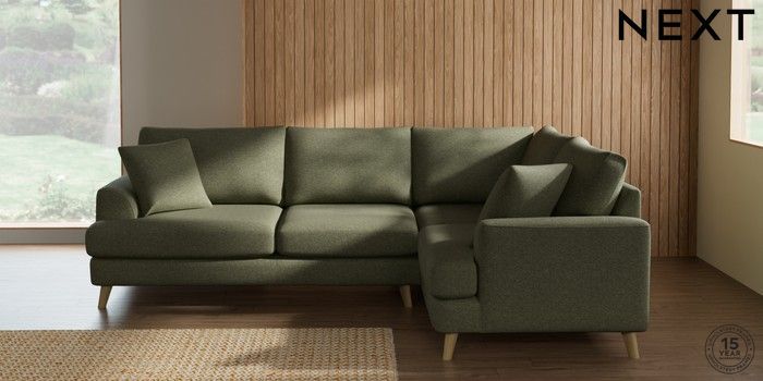 7.2.10 Parker Medium Corner Sofa - Right Hand Tweedy Chenille Mid Moss Green Low Retro Tapered - Light | Made Click here to use our website with more accessibility support, for example screen readers