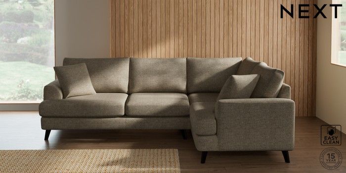7.2.10 Parker Medium Corner Sofa - Right Hand Woven Chenille Easy Clean Mid Natural Low Retro Tapered - Dark | Made Click here to use our website with more accessibility support, for example screen readers